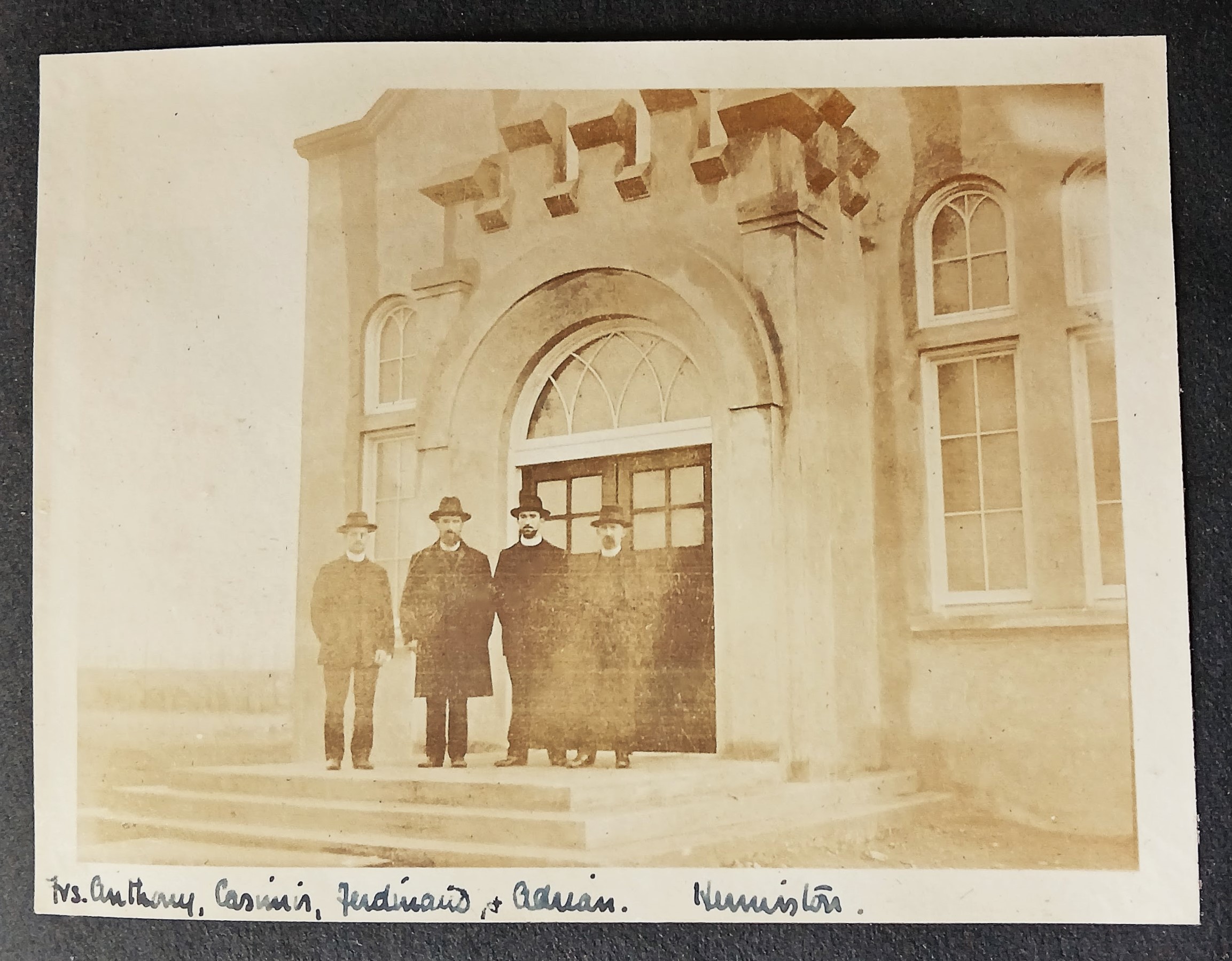 Photograph of Fr. Anthony Holmes OFM Cap., Fr. Casimir Butler OFM Cap., Fr. Ferdinand Glenny OFM Cap., and Fr. Adrian Sharkett OFM Cap. in Hermiston, Oregon