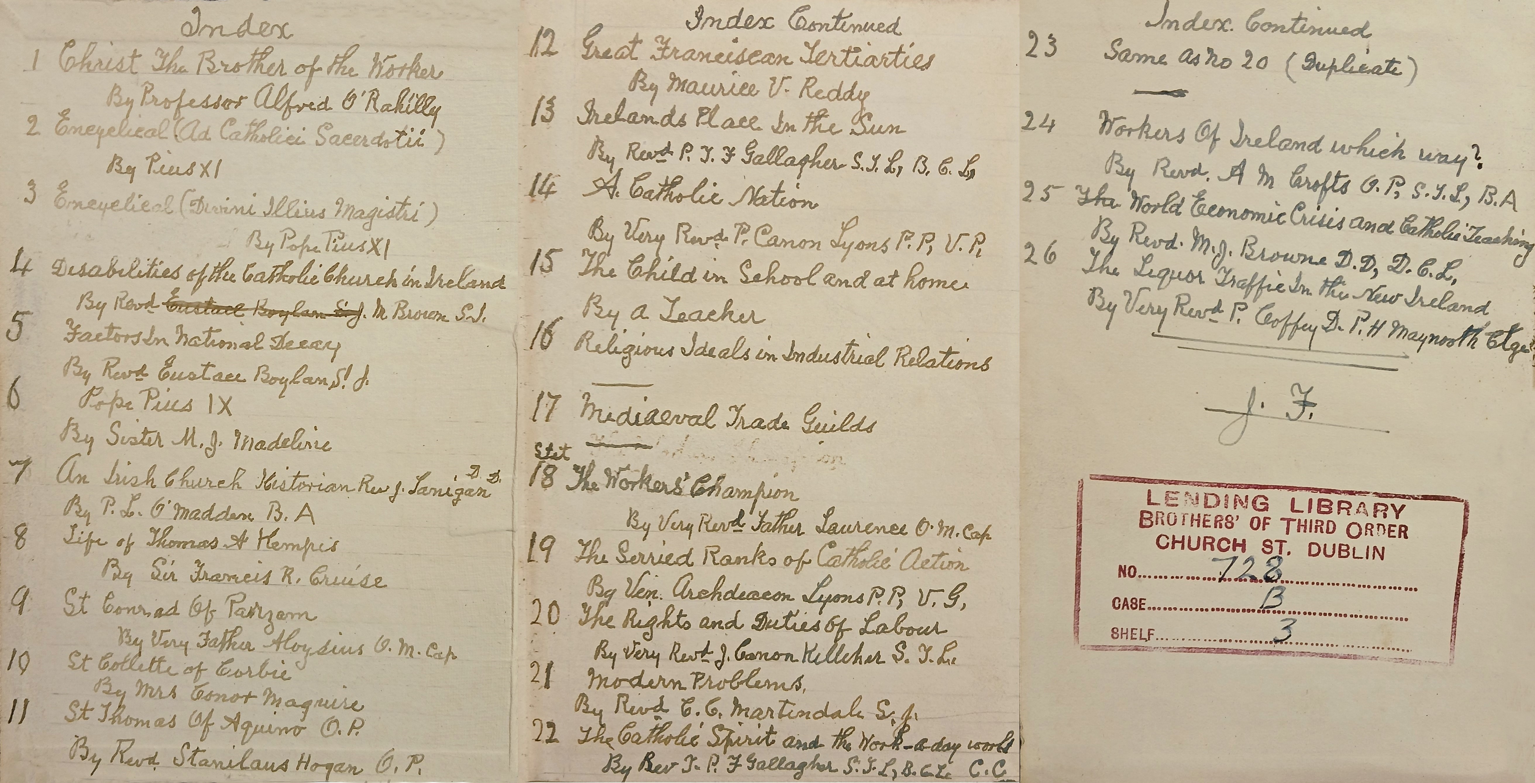 A bound collection of printed pamphlets titled (on the spine) ‘Communism unmasked’. A manuscript index is extant on the first three pages. Includes pamphlets by Professor Alfred O’Rahilly, Fr. Stanislaus M. Hogan OP, Fr. A.M. Crofts OP, and Fr. Laurence Dowling OFM Cap. Many of the pamphlets refer to Catholic social teaching.