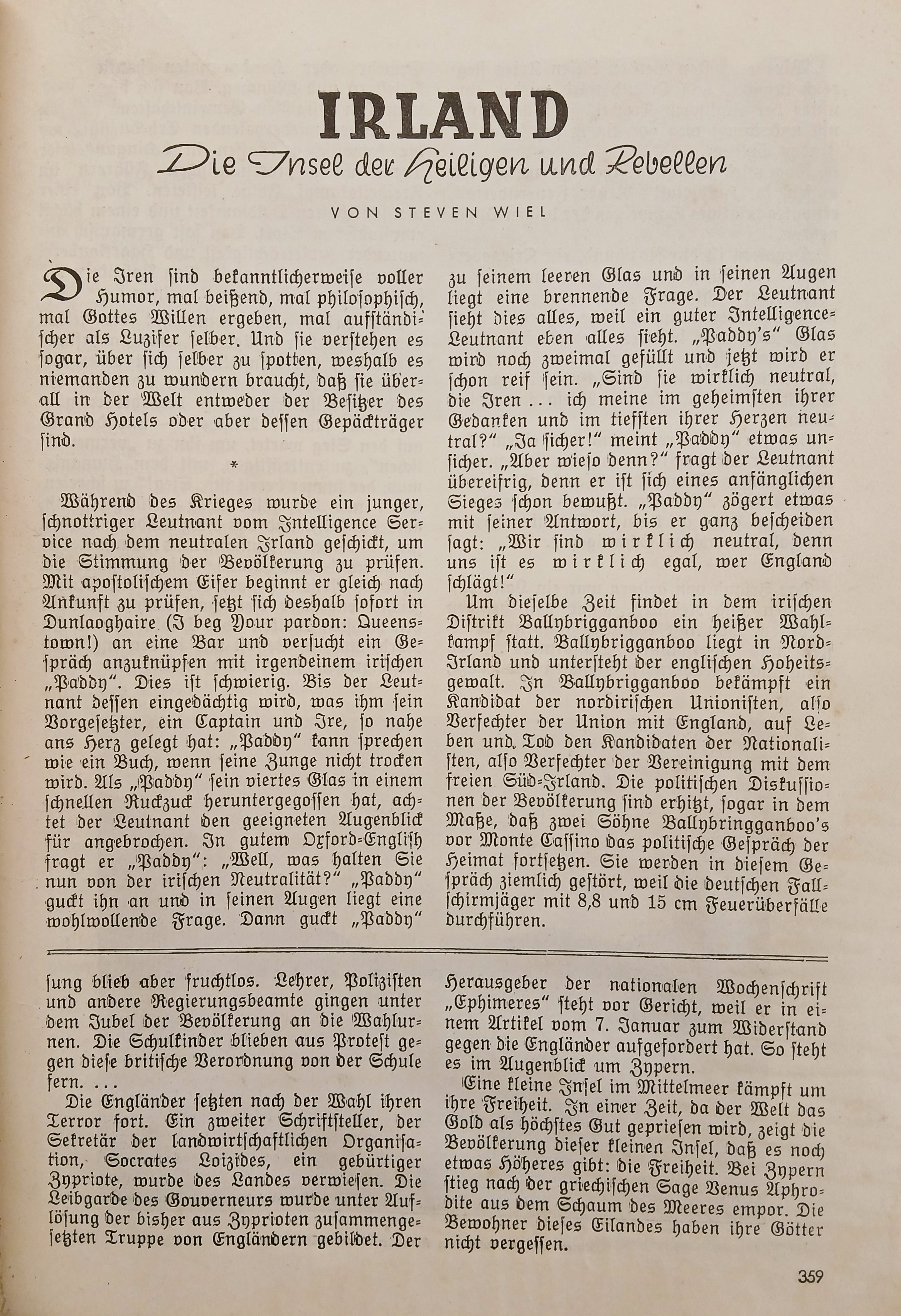 A copy of ‘Der Weg / Monatshefte zur Kulturpflege und zum Aufbau’, 4 Jahrgang (1950). The edition carries an illustrated article on Ireland.