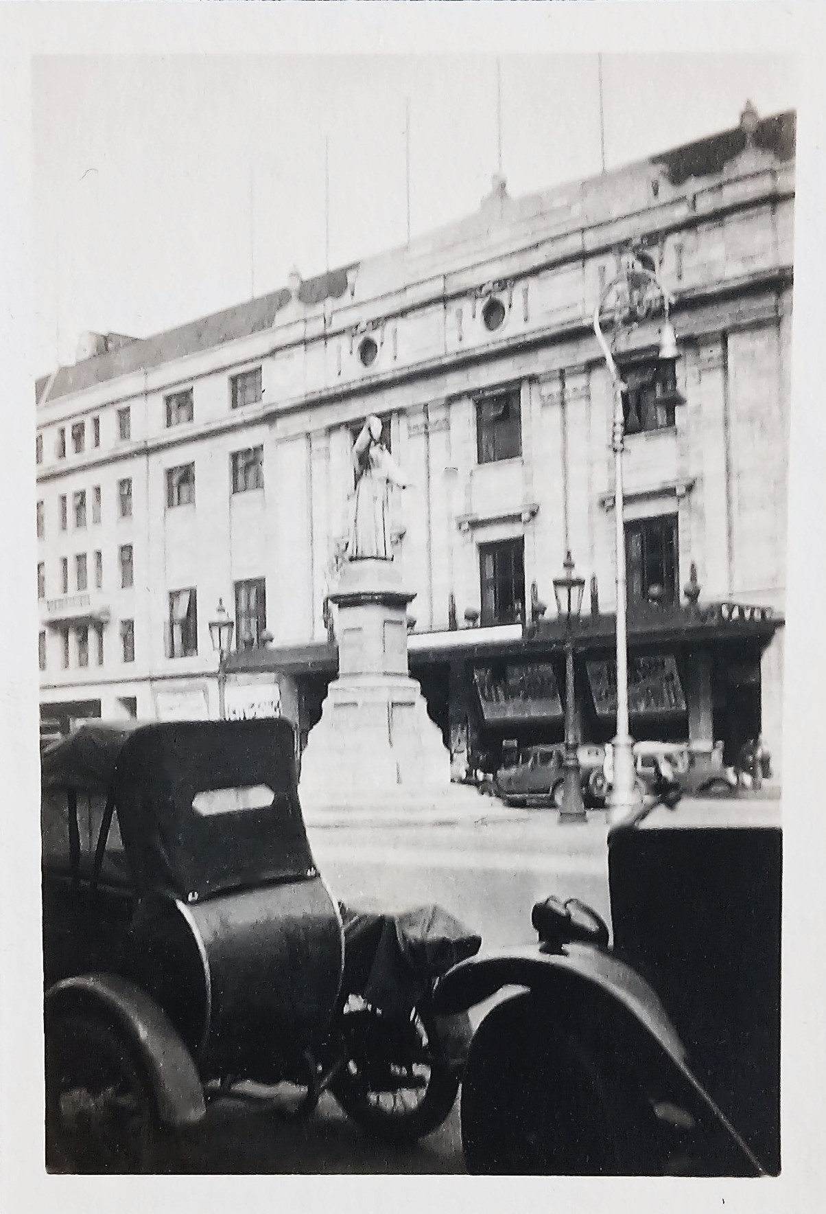 An image of the Father Mathew statue on Upper O’Connell Street in Dublin. An advertisement for ‘City of Song’, a musical, is displayed at the entrance to the Carlton Cinema in the background. This film was released in 1931.
