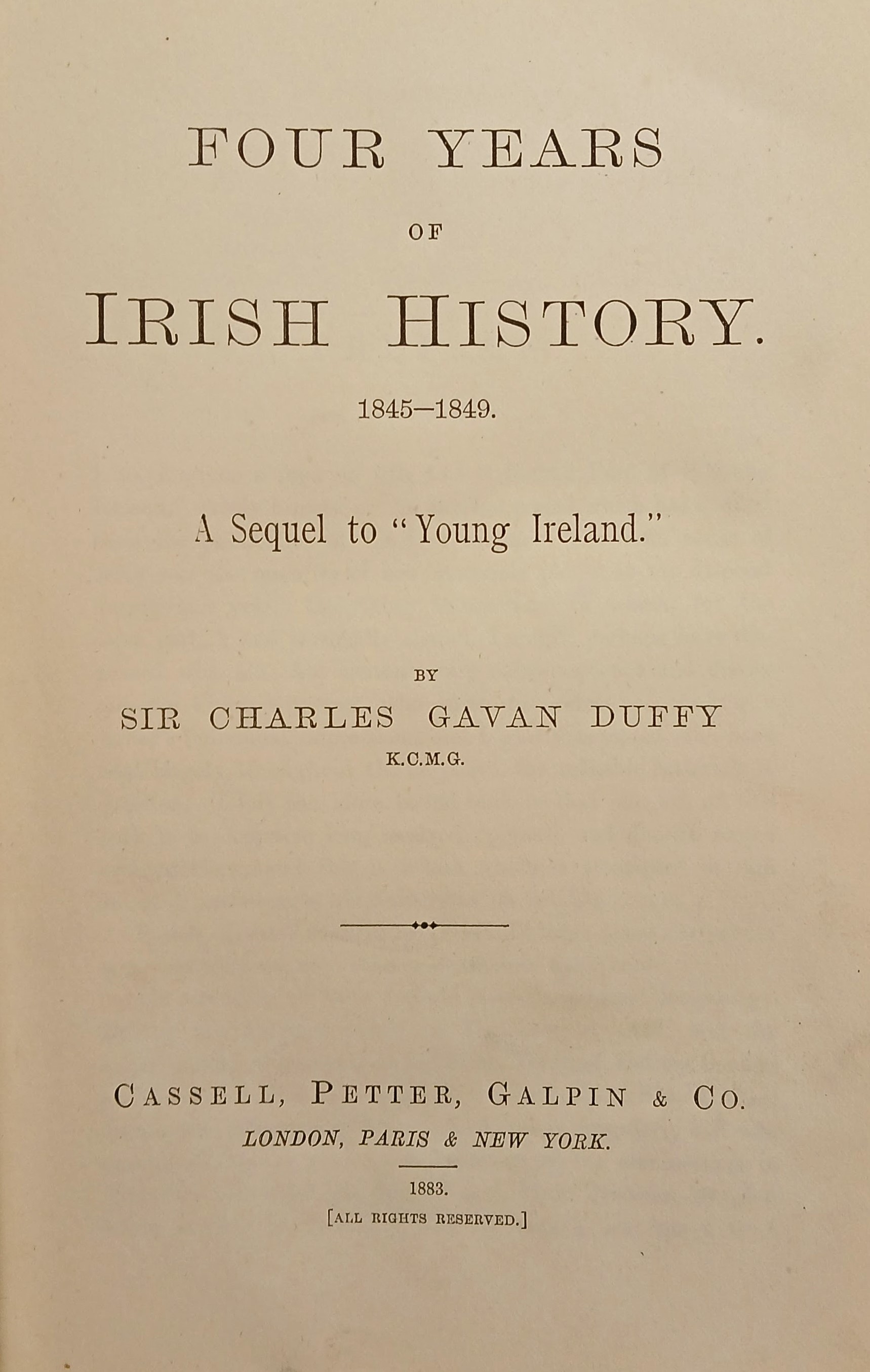 A copy of Sir Charles Gavan Duffy, ‘Four years of Irish history, 1845-1849 / a sequel to “Young Ireland”’ (London: Cassell, Petter, Galpin & Co., 1883).