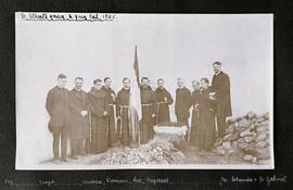 Mourners at the grave of Fr. Albert Bibby OFM Cap. in Mission Santa Inés in California. The group includes Fr. Joseph Fenelon OFM Cap., Fr. Ambrose Brunton OFM Cap., Fr. Dominic O’Connor OFM Cap., Fr. Leo Sheehan OFM Cap., Fr. Raphael Quinn OFM Cap., and Fr. Gabriel Harrington OFM Cap.