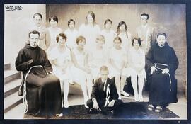 Fr. Fintan Roche OFM Cap. (seated, left) and Fr. Stephen Murtagh OFM Cap. with young parishioners in Watts, Los Angeles.