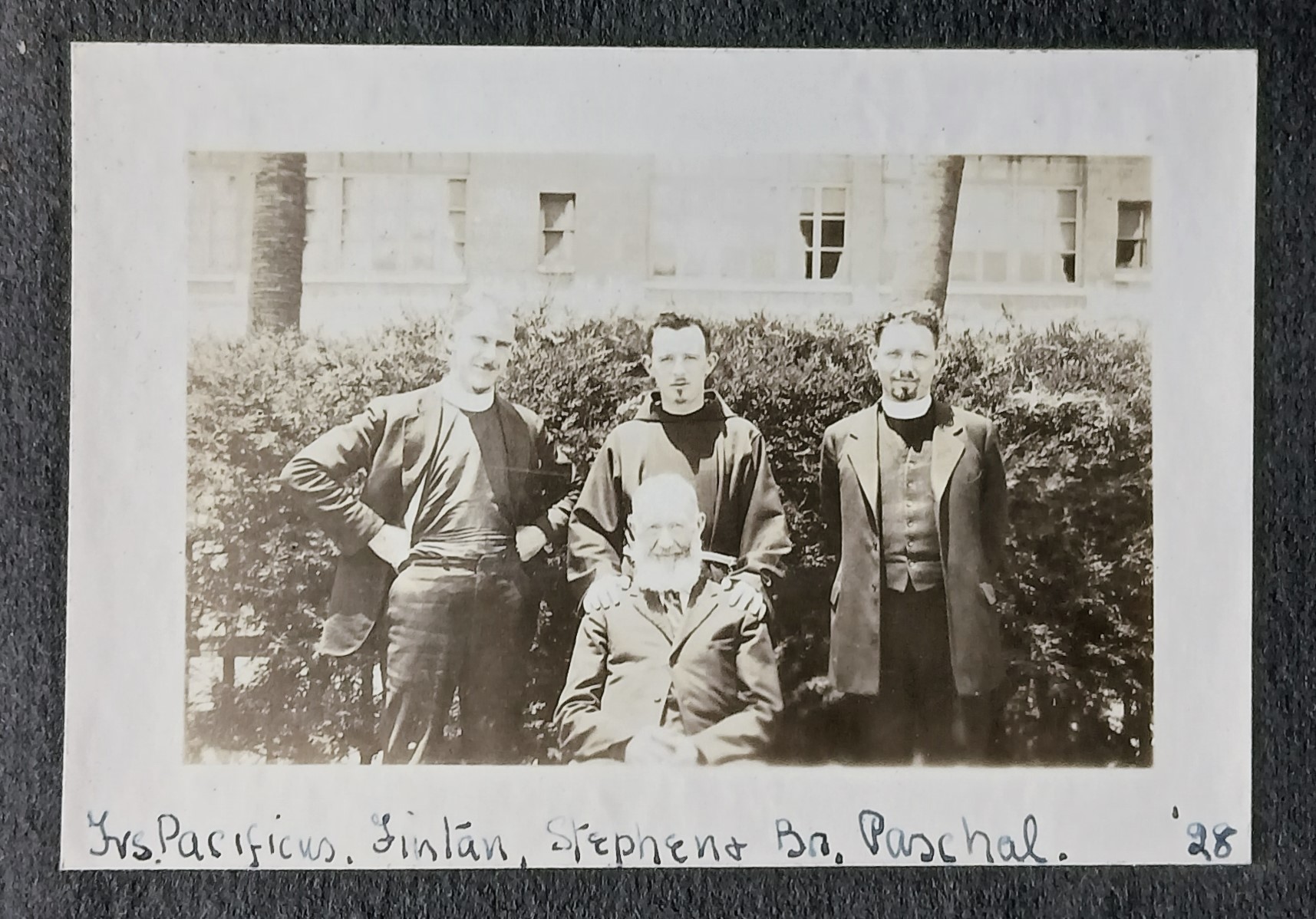 Photograph of Fr. Pacificus McCafferty OFM Cap., Fr. Stephen Murtagh OFM Cap., and Fr. Fintan Roche OFM Cap. The other individual is identified as Br. Paschal.