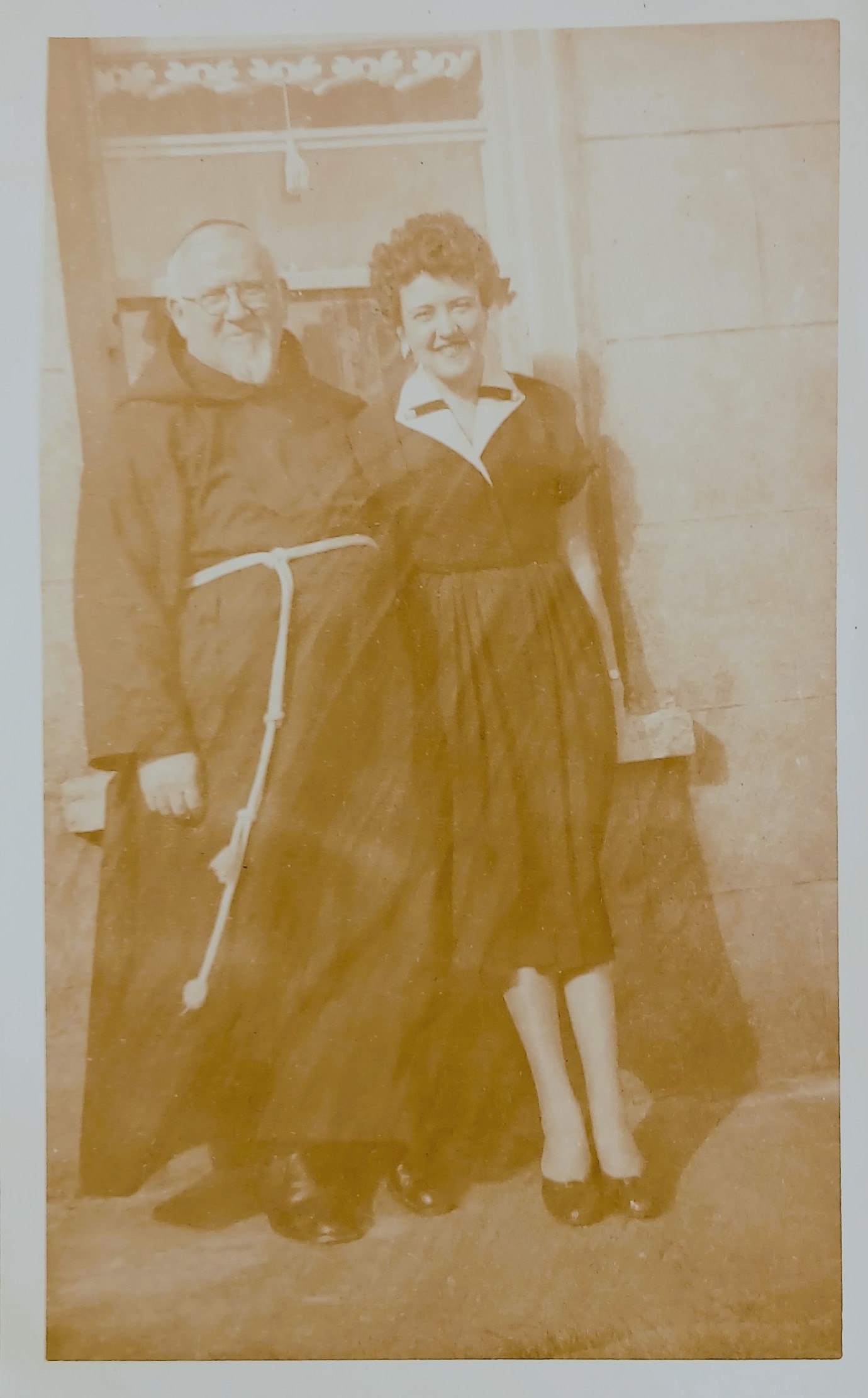 An image of Fr. Senan Moynihan OFM Cap. with an unidentified woman.