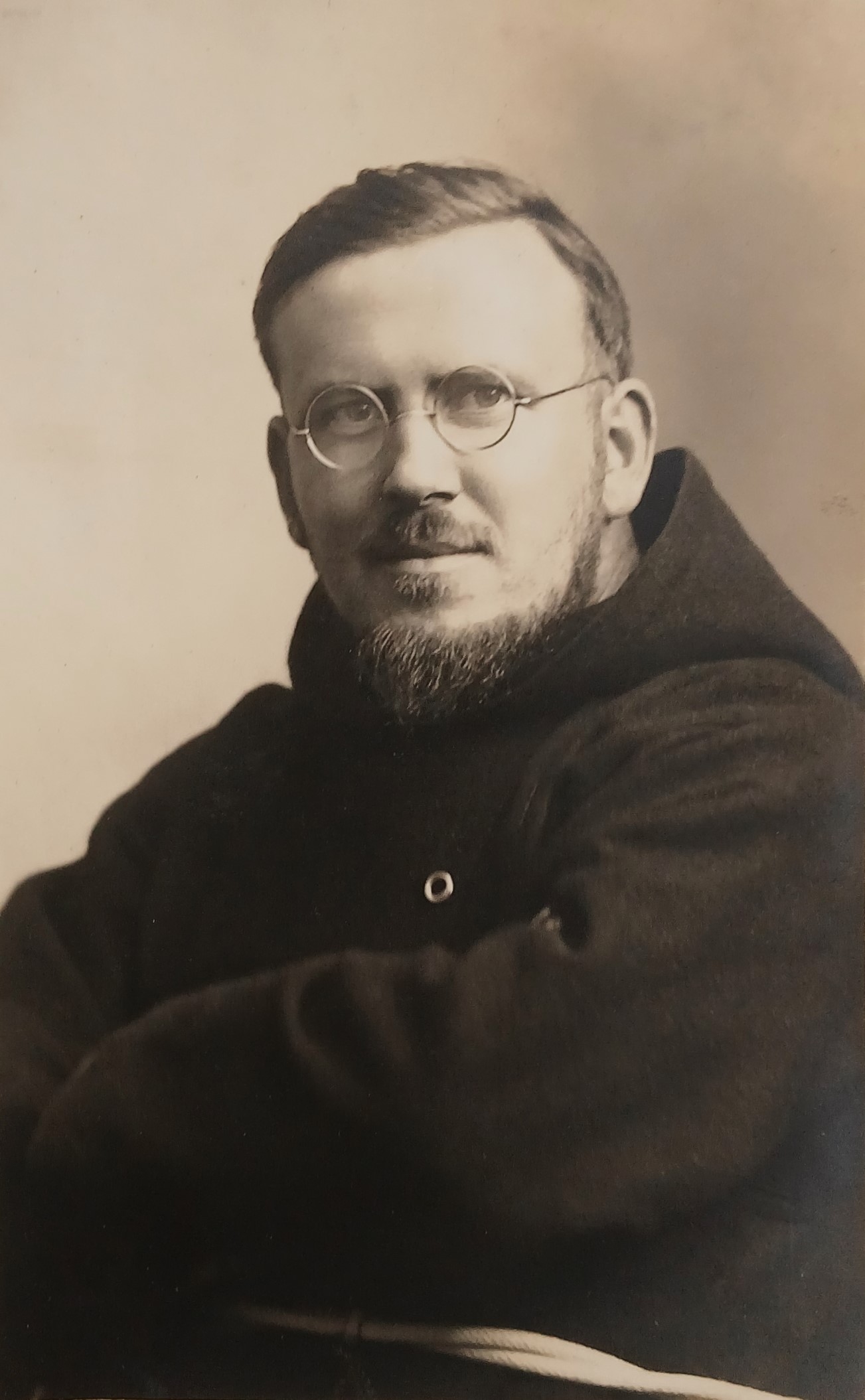 A studio photograph of Fr. Senan Moynihan OFM Cap. The image is credited to C. and L. Walsh, 55 Lower Mount Street, Dublin.