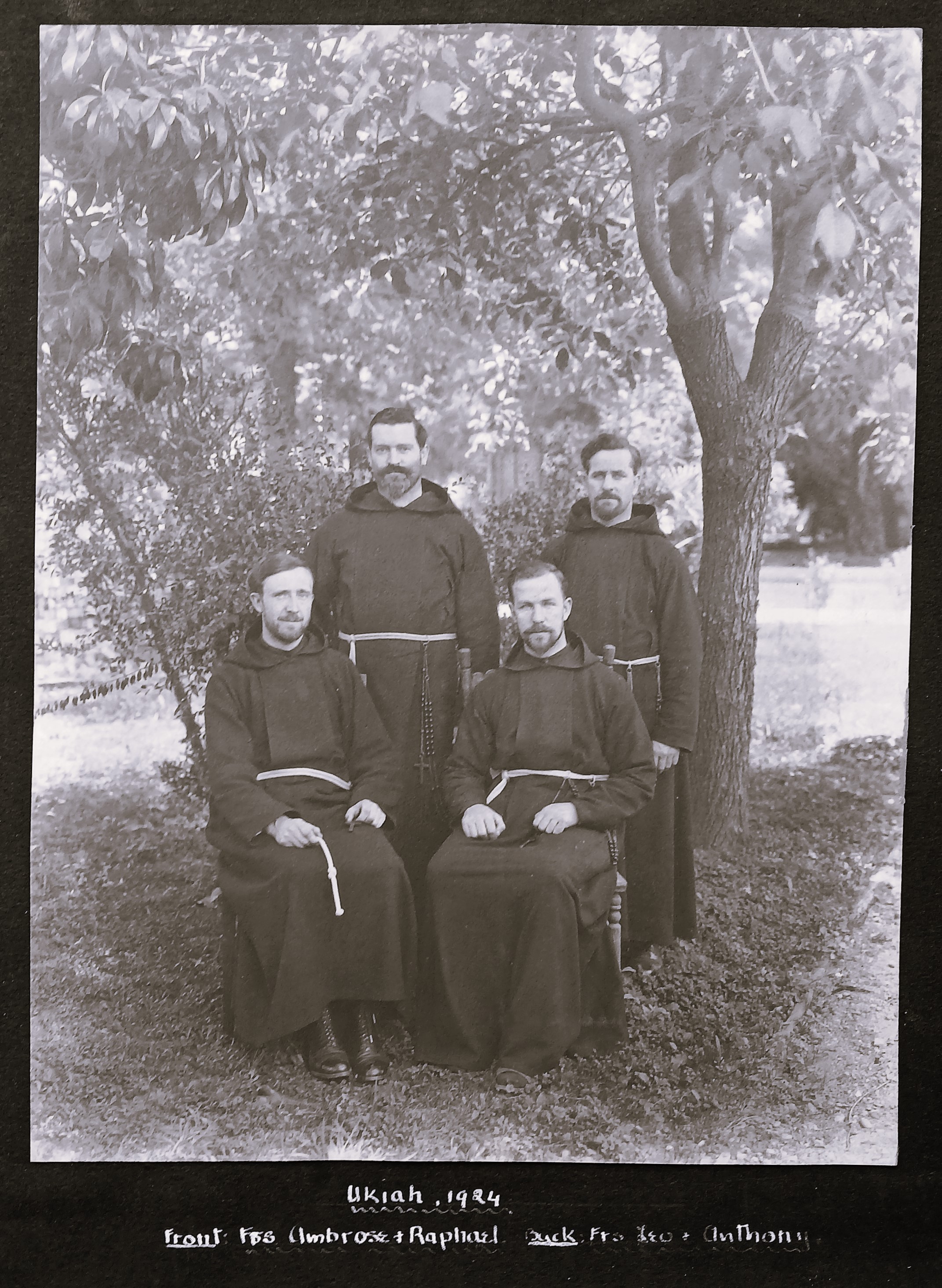 A group of Irish Capuchin friars in Ukiah, California. The group comprises Fr. Ambrose Brunton, Fr. Raphael Quinn OFM Cap., Fr. Leo Sheehan OFM Cap., and Fr. Anthony Holmes OFM Cap.
