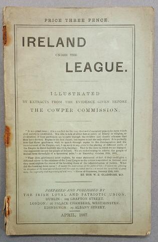 A copy of a pamphlet titled ‘Ireland under the League / illustrated by extracts from the evidence given before the Cowper Commission’ (Dublin: Irish Loyal and Patriotic Union, 1887).