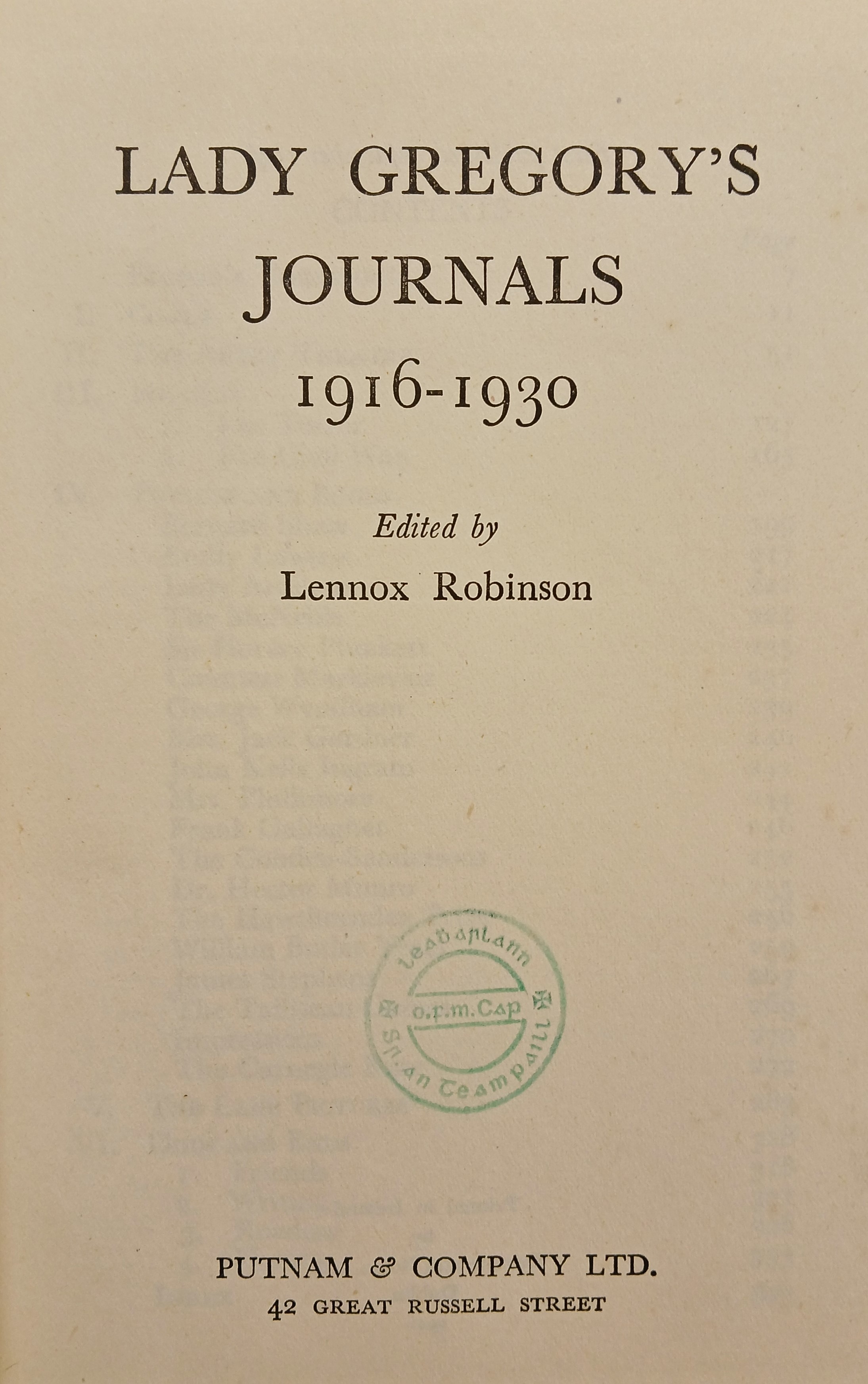 Lady Gregory’s Journals, 1916-1930