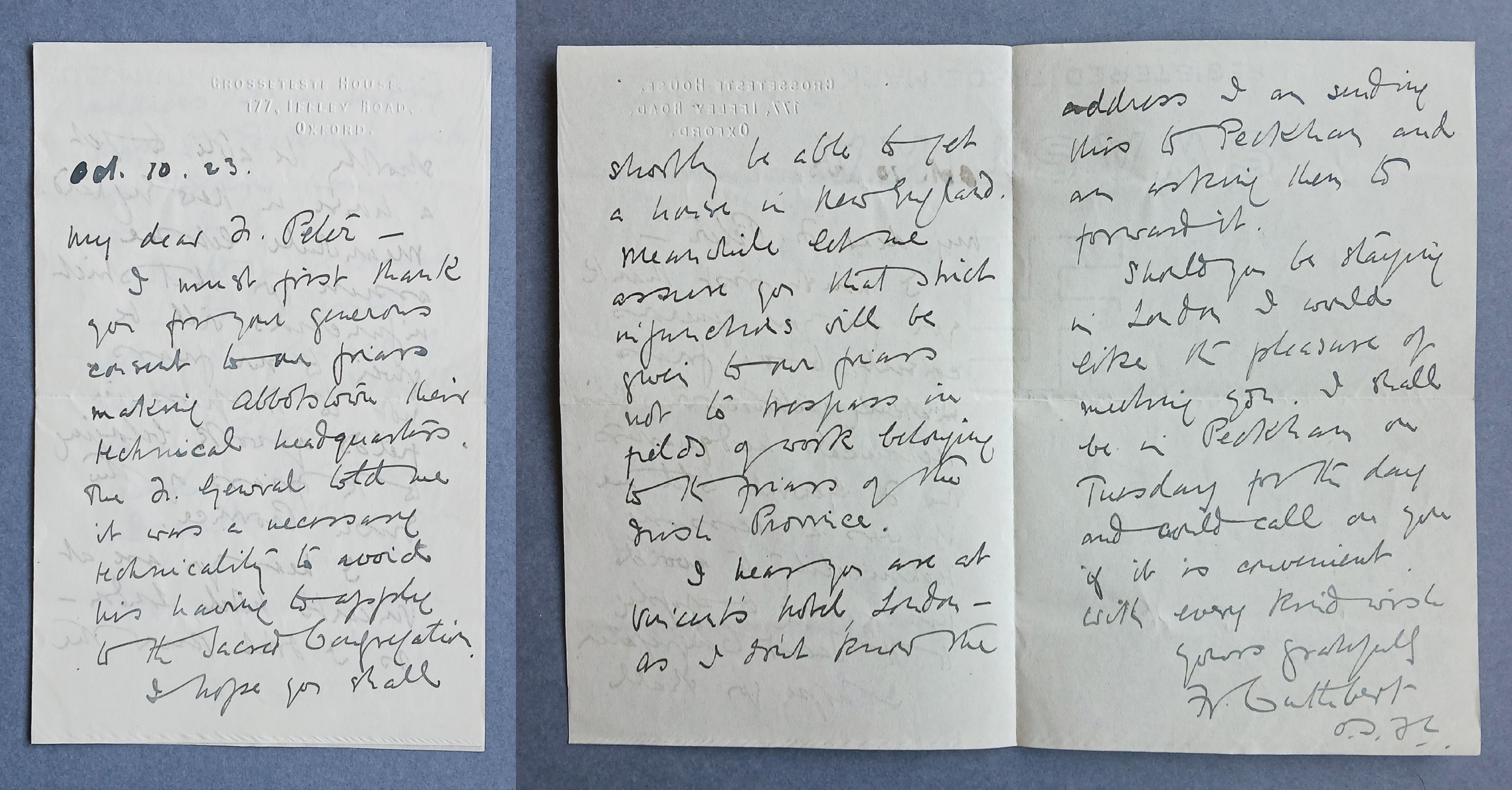 Letter from Fr. Cuthbert Hess to Fr. Peter Bowe