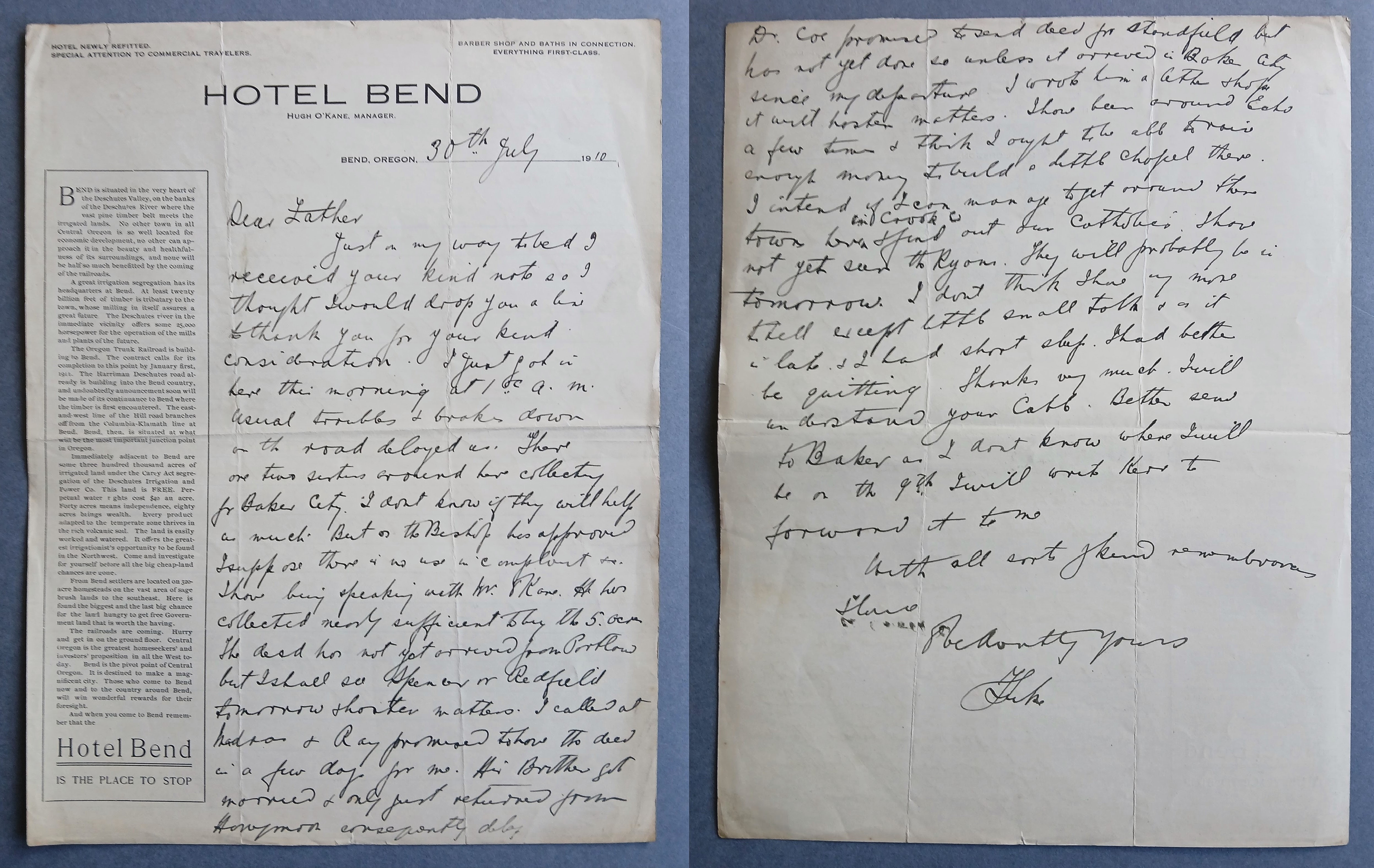 Letter from Fr. Luke Sheehan OFM Cap., Bend, Oregon, to Fr. Thomas Dowling OFM Cap., Provincial Minister, referring to the status of several land deals for new churches. He also notes that two religious sisters have been collecting funds for Baker City. While Father Luke is unsure how much they will help, the Bishop has approved the effort.
