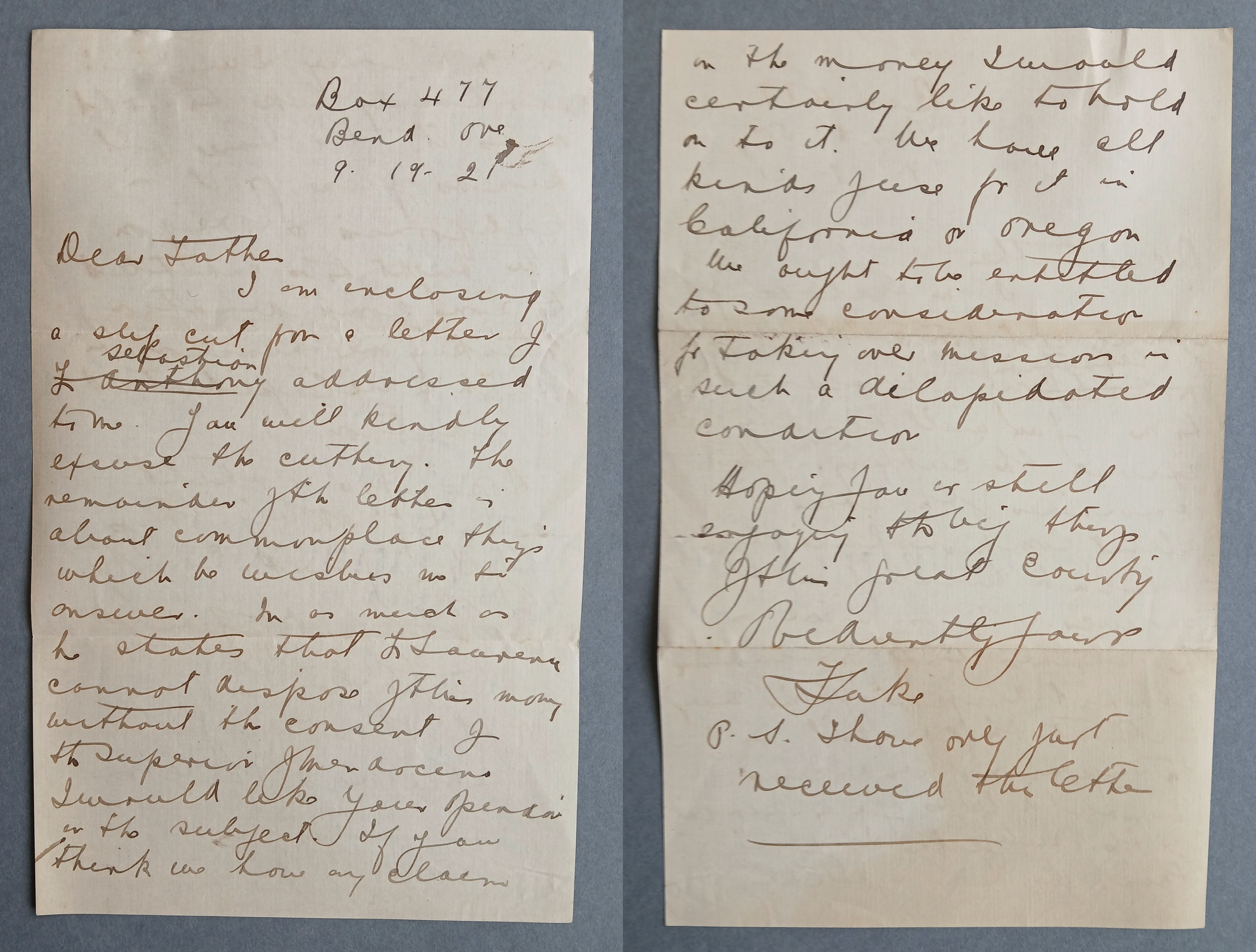 Letter from Fr. Luke Sheehan OFM Cap. to Fr. Edwin Fitzgibbon OFM Cap., Provincial Minister, enclosing a typescript extract of letter relating to a life insurance policy taken out by two English Capuchin friars while they were working as missionaries in Mendocino County in California. Fr. Luke claims that the Irish friars should be ‘entitled to some consideration for taking over missions in such a dilapidated condition’.