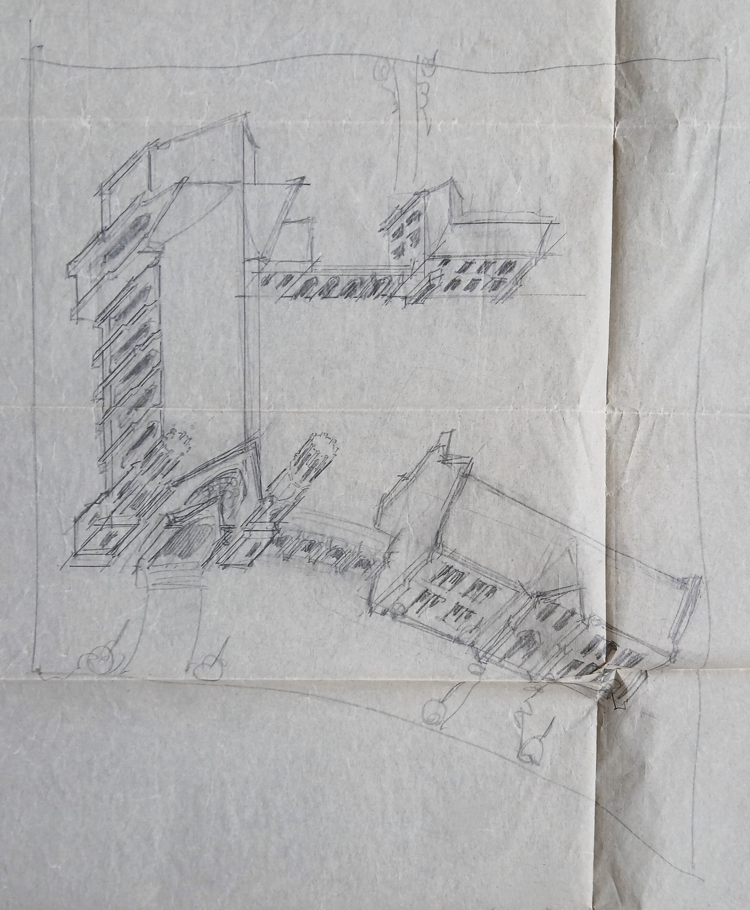 4 pp; manuscript and pencil sketch