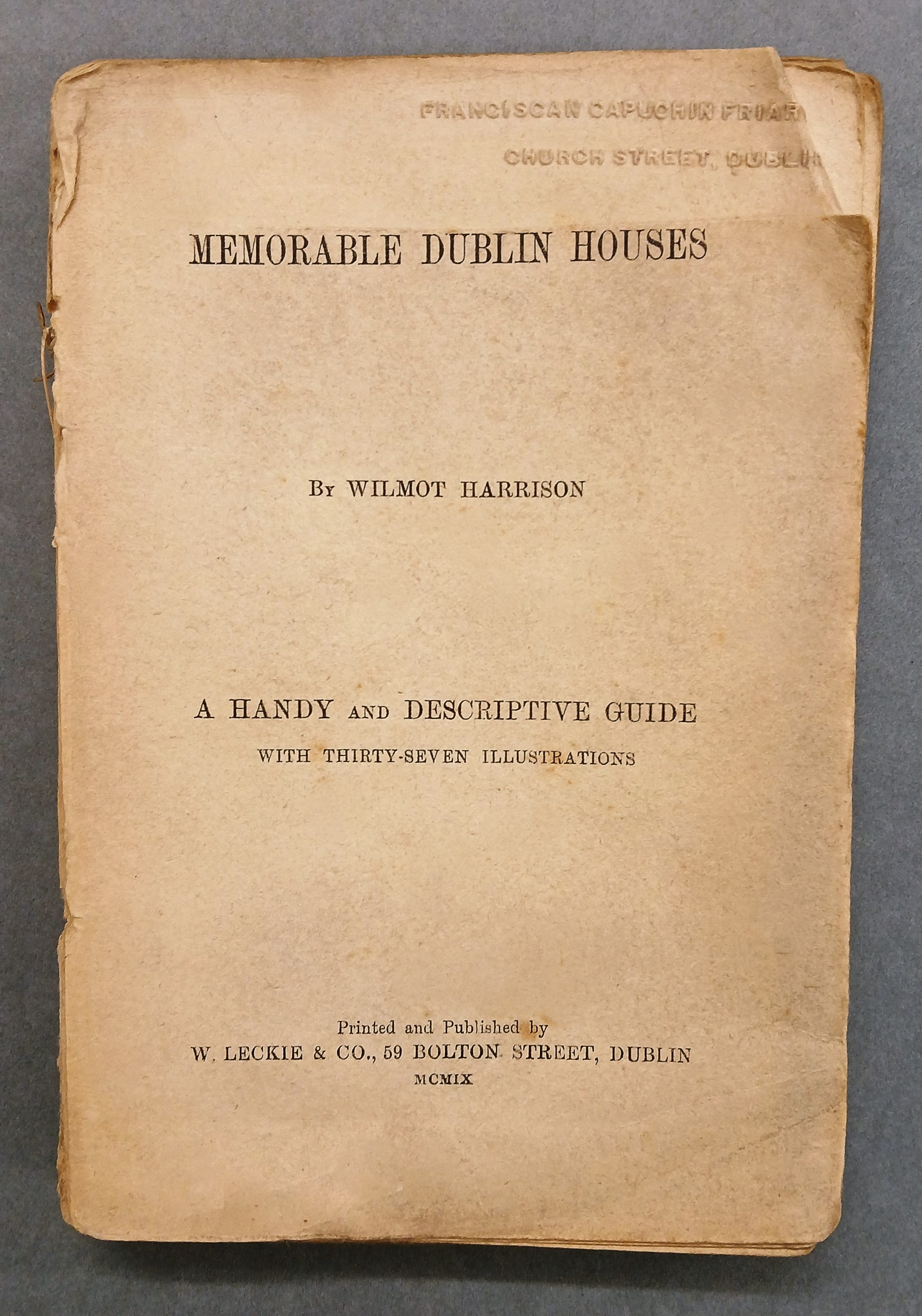 A copy of Wilmot Harrison ‘Memorable Dublin houses / a handy and descriptive guide / with thirty-seven illustrations’ (Dublin: W. Leckie, 1909).