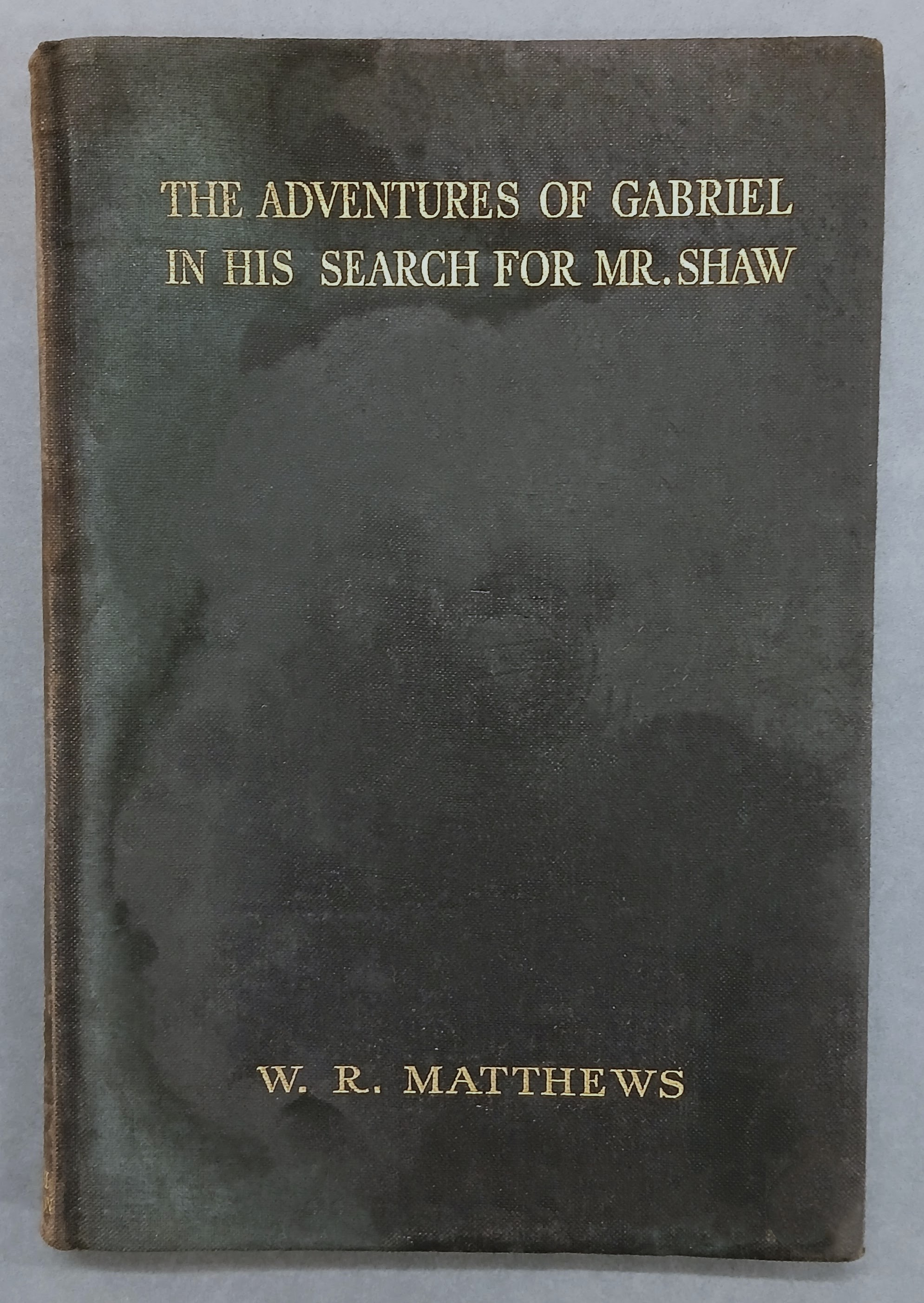 A copy of W.R. Matthews, ‘The adventures of Gabriel in his search for Mr. Shaw / a modest companion for Mr. Shaw‘s Black girl … illustrated by Ruth Wood’ (London: H. Hamilton, 1933).