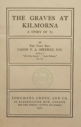 A copy of Canon Patrick Sheehan, ‘The graves at Kilmorna / a story of ’67’ (New York: Longmans, Green, & Co., 1915).