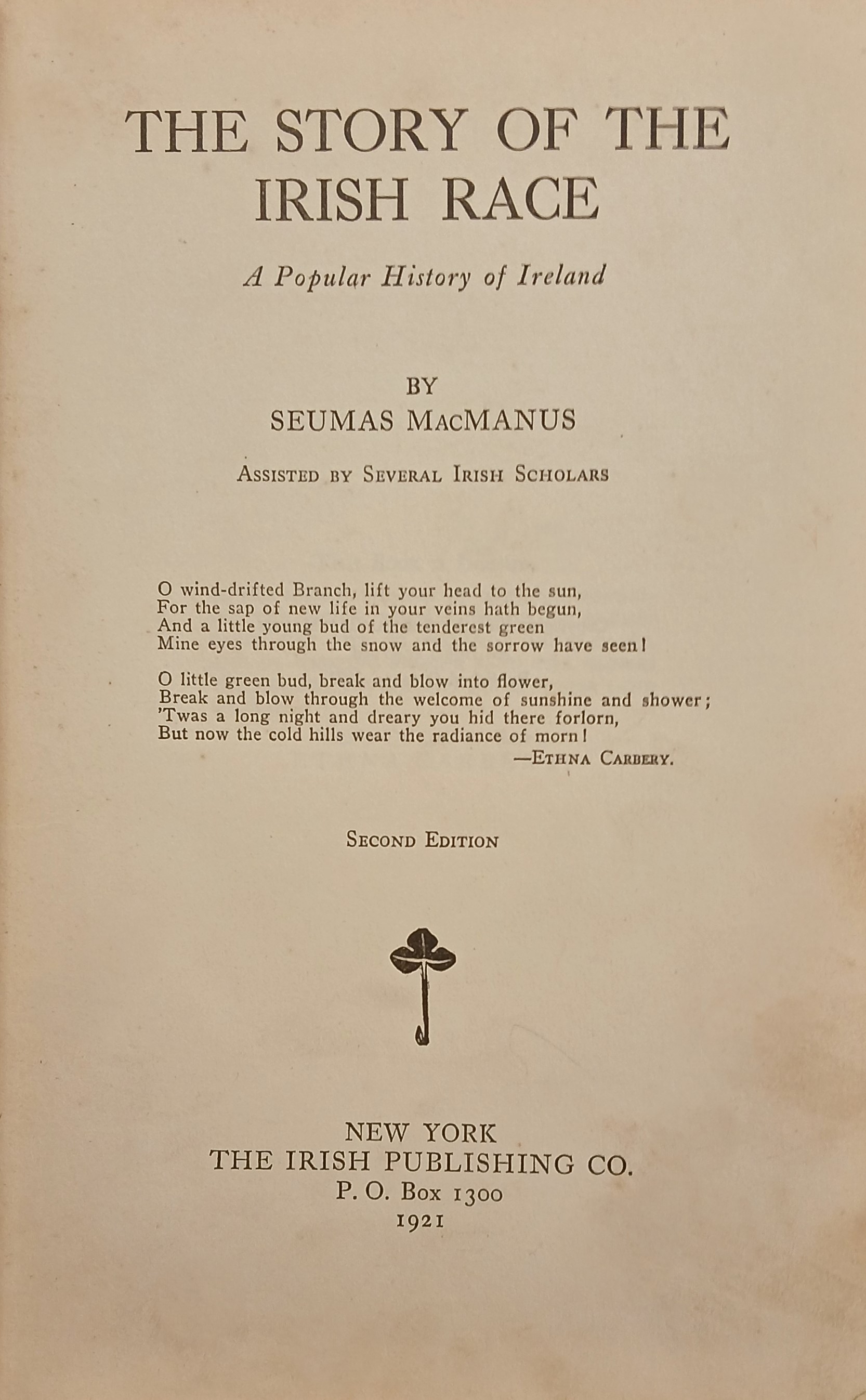 A copy of Seumas MacManus, ‘The story of the Irish race / a popular history of Ireland’ (New York: The Irish publishing co., 1921).