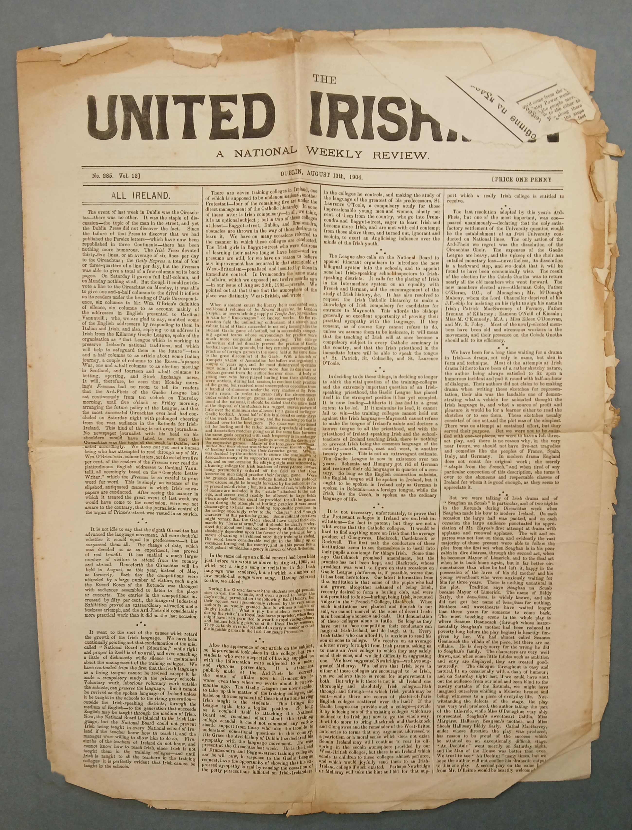 A copy of the ‘United Irishman’, Vol. 12, No. 285 (13 August 1904).