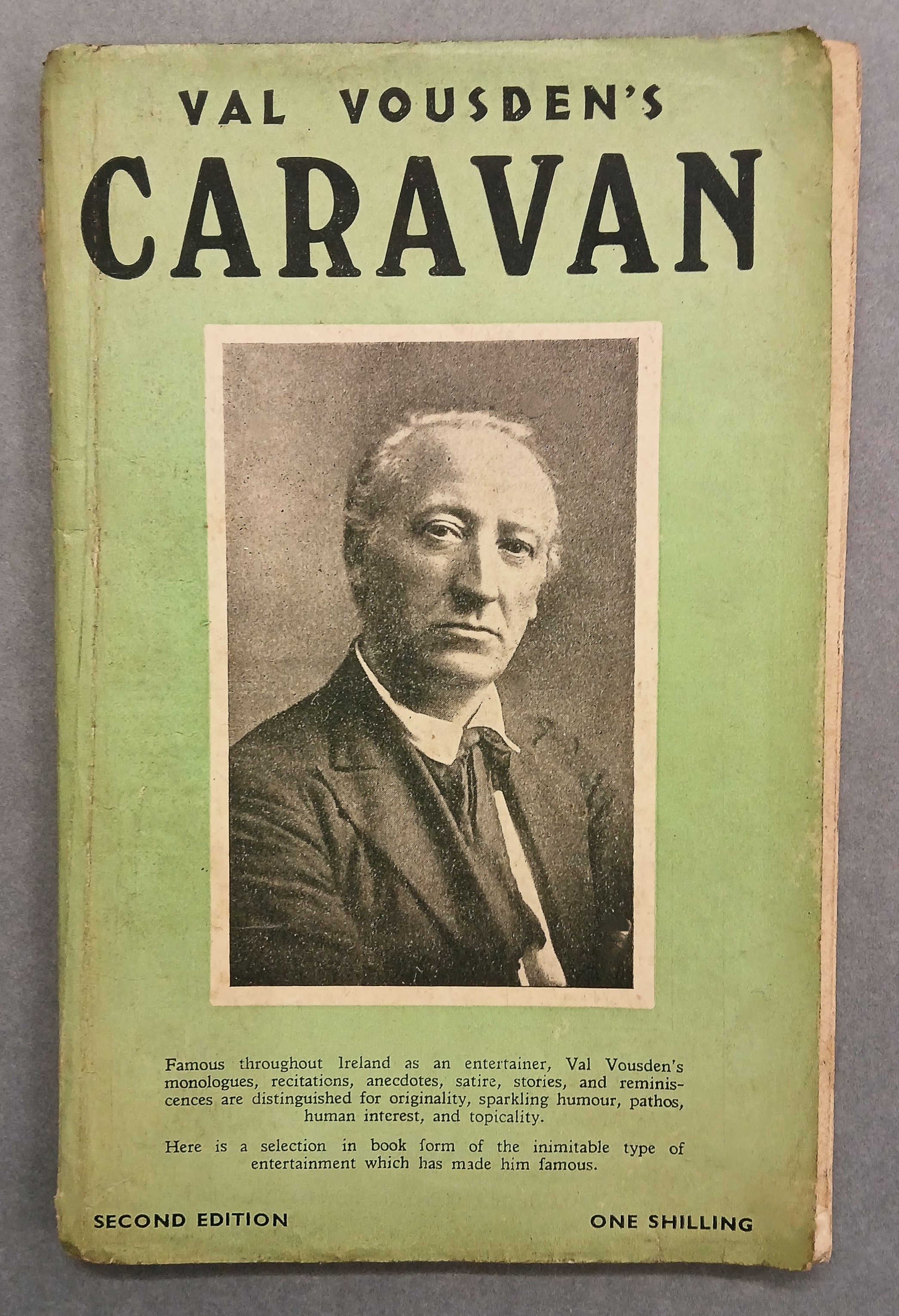 A copy of ‘Val Vousden's caravan’ (Dublin: 2nd edition, Cahill & Company, [c.1941]). The text features a series of monologues, recitations, anecdotes, satire, stories, and reminiscences compiled by the Irish entertainer Val Vousden (Bill MacNevin).
