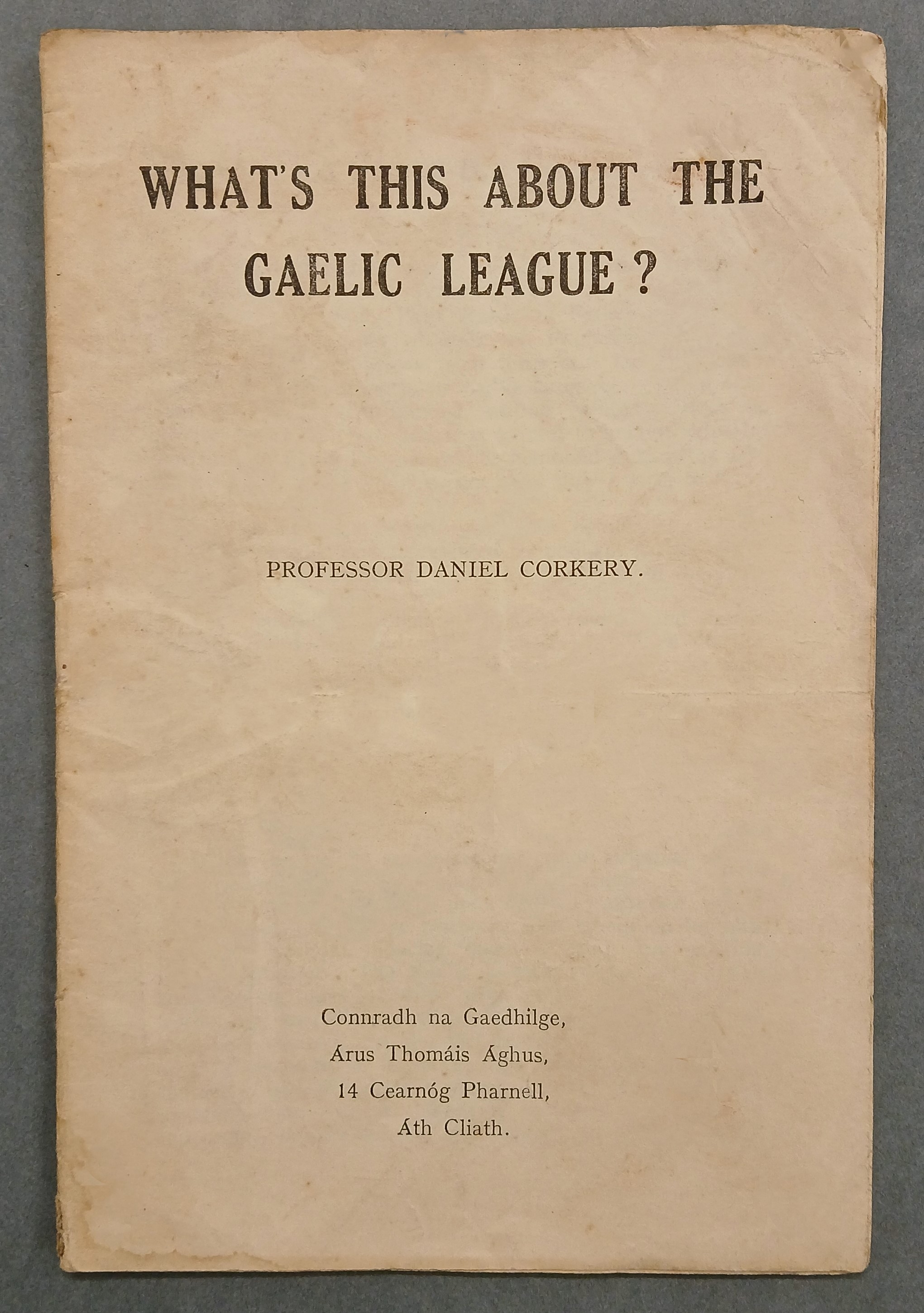 A copy of Professor Daniel Corkery, ‘What's this about the Gaelic League?’ (Baile Átha Cliath: Connradh na Gaedhilge, [1942]).